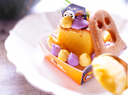 おしゃれなハロウィンシーンを演出してくれる、かぼちゃのプリンタルトです。ハロウィンカラーのバタークリームのデコレーションと、おばけクッキーがチャーミングなアクセント。おひとり様サイズなので、パーティーの手土産にもおすすめです。