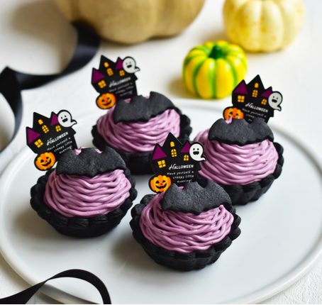 ガナッシュ入りチョコタルトとブルーベリークリームの色合いがハロウィンにぴったり!ラッピングして手土産やプレゼントにもおすすめです。