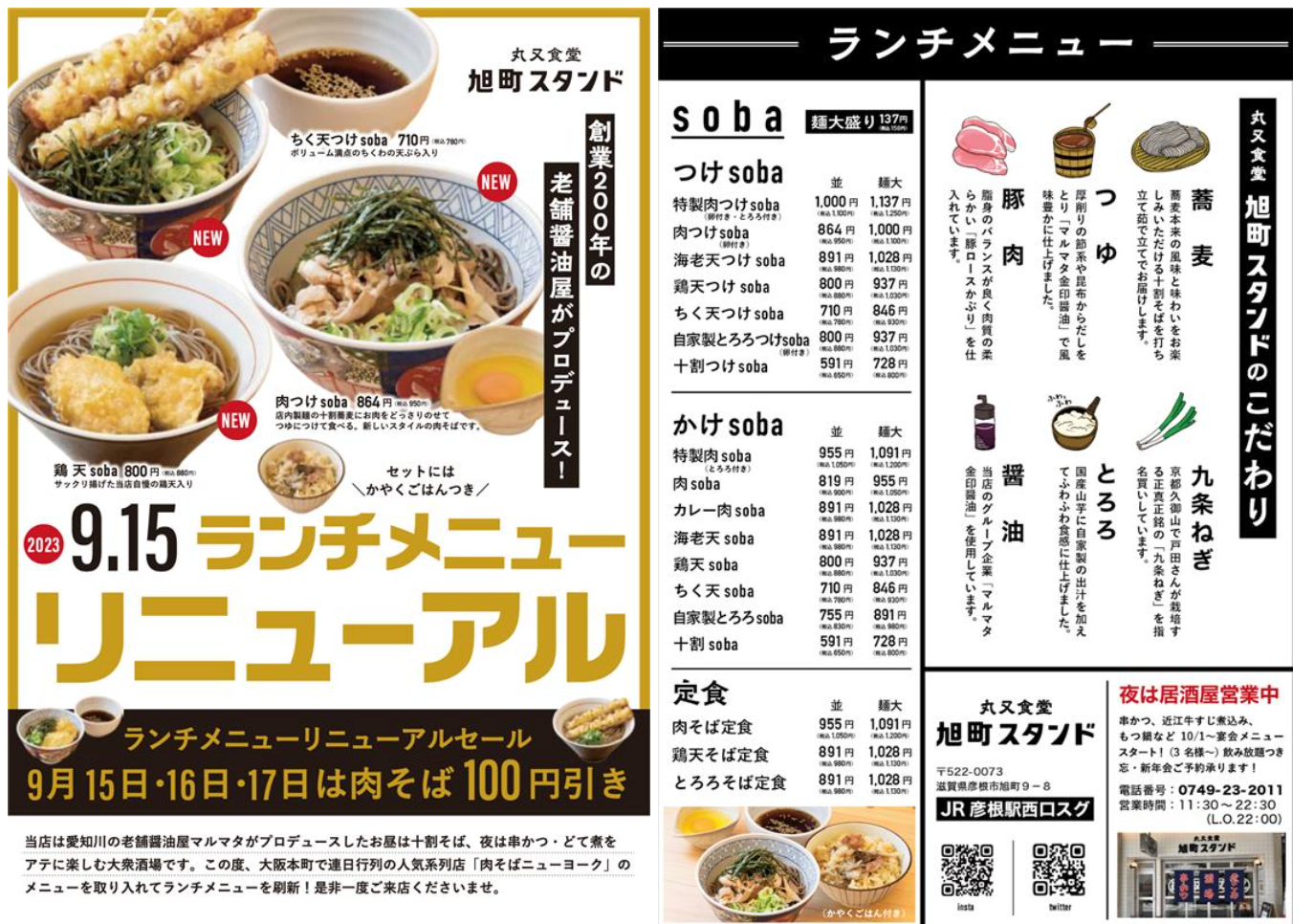 また、リニューアルセールとして、9月15日から17日までの3日間、「肉つけsoba」が100円引きで販売されます。この機会をお見逃しなく。