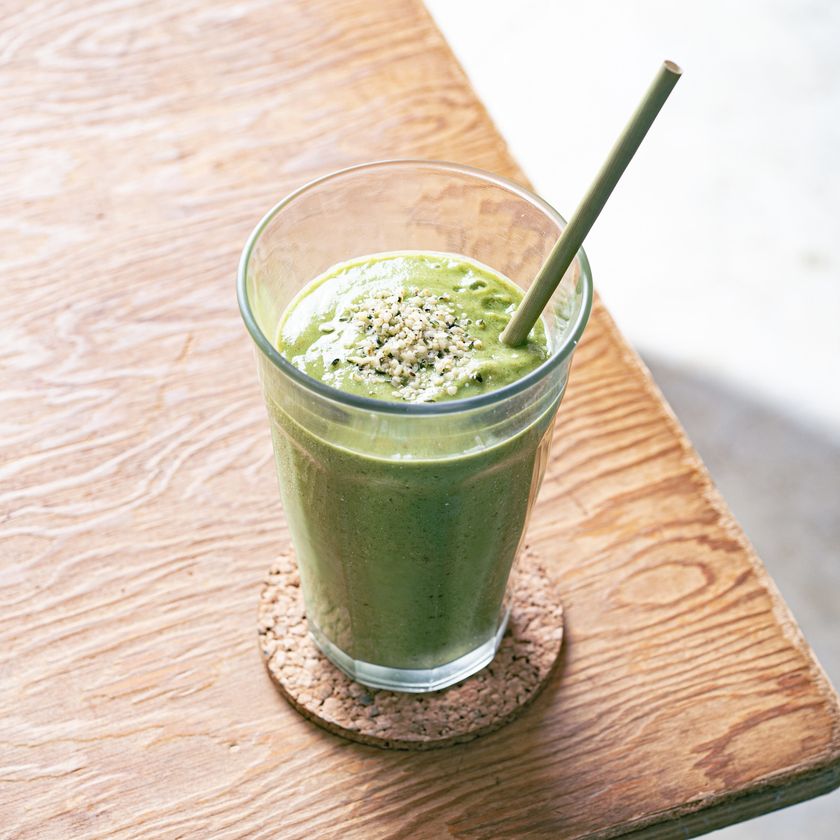 野菜の王様・ケールを使ったスムージーです。フルーツや野菜、ヘンプシードをミックスし、栄養満点に仕上げています。