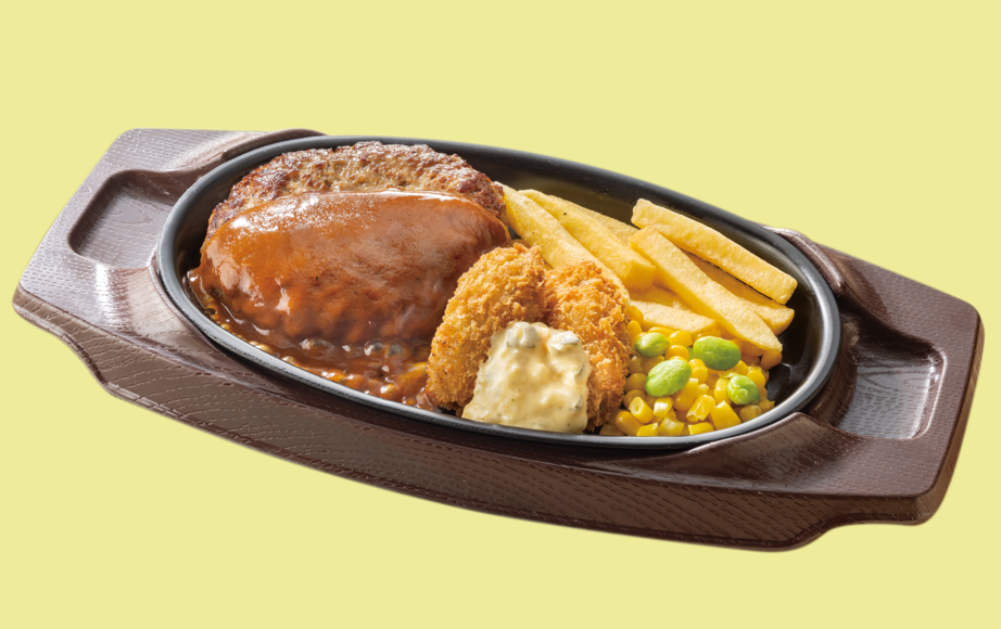 チーズINハンバーグ&カキフライ 864円 (税込 950円)