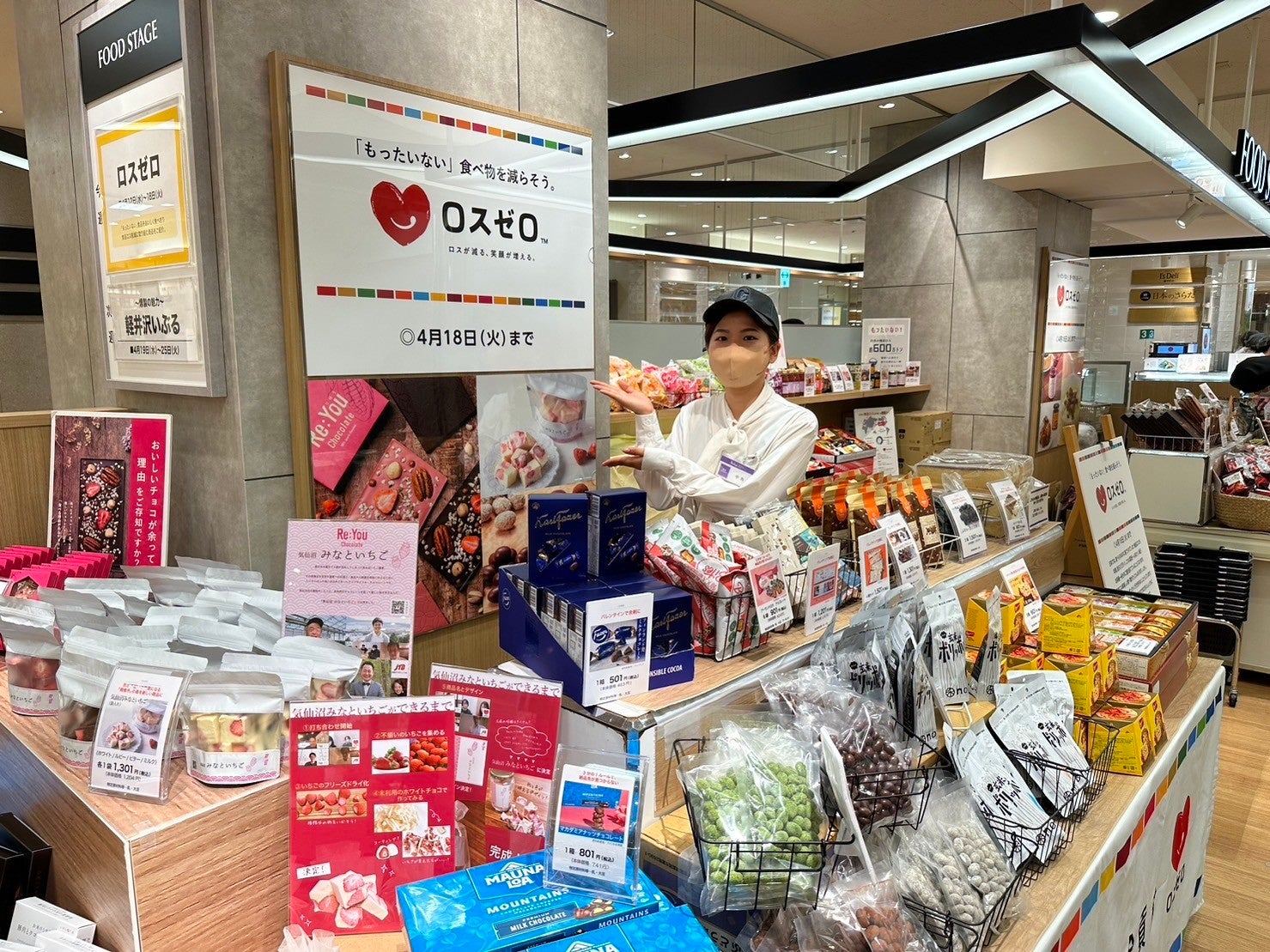 2023年4月に出店したロスゼロストアの様子。バレンタインで余剰になったチョコレートや年末年始のギフト商品を販売。