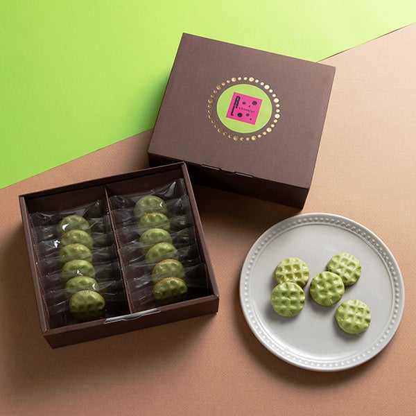 色鮮やかな抹茶のチョココーティングが目を引く抹茶カラーのサブレ。