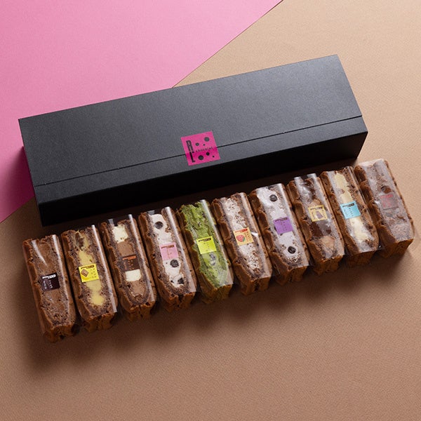 ふわふわのワッフル生地でクリームやフルーツをサンドした、エール・エルのロングセラー商品「ワッフルケーキ」。880種類を超えるレシピの中からチョコを使ったフレーバーだけを集めた『R.L chocolat』限定の10種セットです。