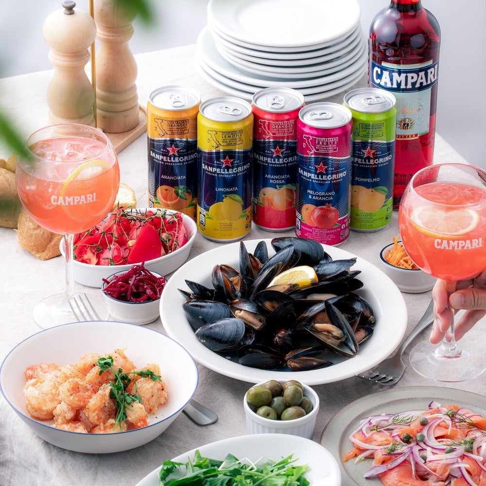 カンパリと相性抜群なサンペレグリノで、本場のアペリティーボカクテルをぜひお楽しみください。