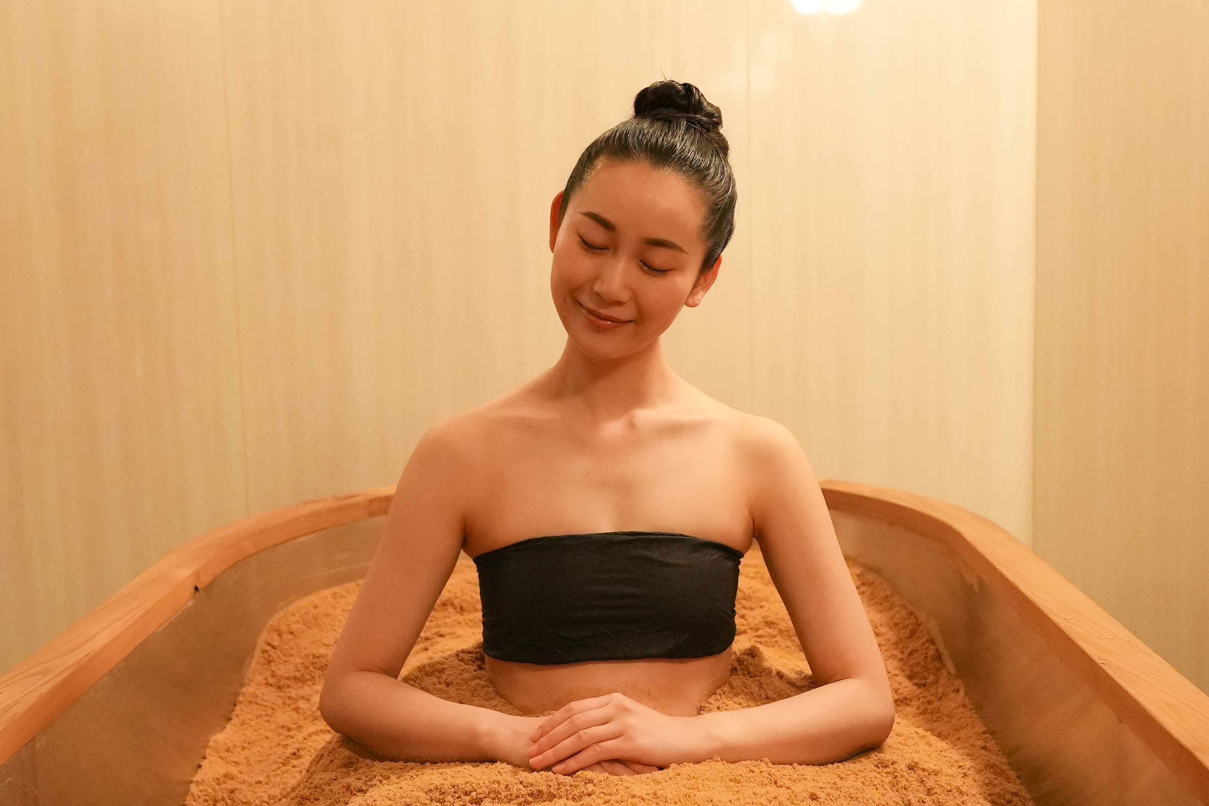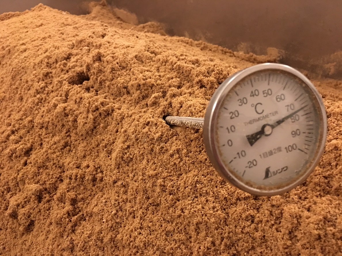 発酵熱は約65~85℃前後、実際の体感温度としては、約40~45℃(15分程の入浴)で、発汗とリフレッシュを堪能いただけます。