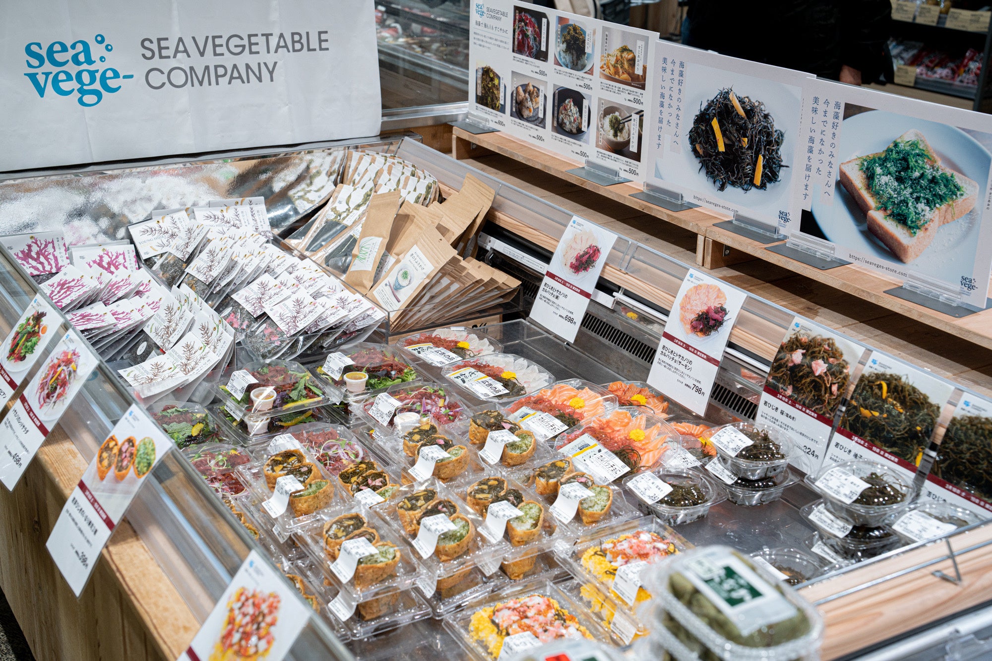 店内の生鮮コーナーでは、既存商品だけでなくシーベジタブルの海藻を使用したお惣菜が数種並ぶほか、「素の食」をコンセプトに、地元の生産者さんから届く新鮮な食材を活かした季節ごとのメニューが楽しめる併設のCafé&Meal MUJIでは、海藻2種を使用した「ひじきの白和え」がメニューイン。