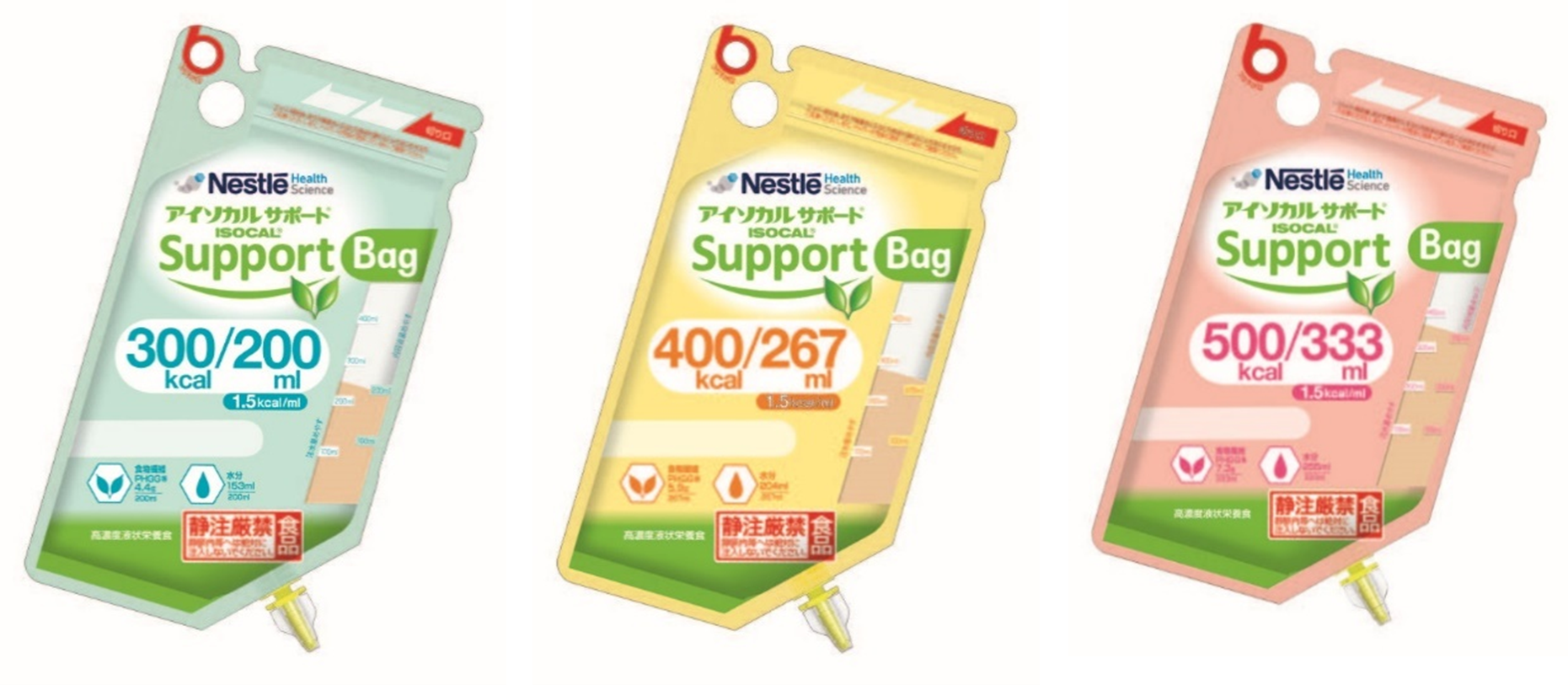 ネスレ ヘルスサイエンスは、 高齢化に伴う疾患などにより通常の食事で十分な栄養を摂ることが困難な方々の課題に対して、「アイソカル ファイブケア」や「アイソカル サポート1.5 Bag」などの病者用食品「総合栄養食品」を開発・販売し、栄養不足の解消や健康維持に貢献していきます。