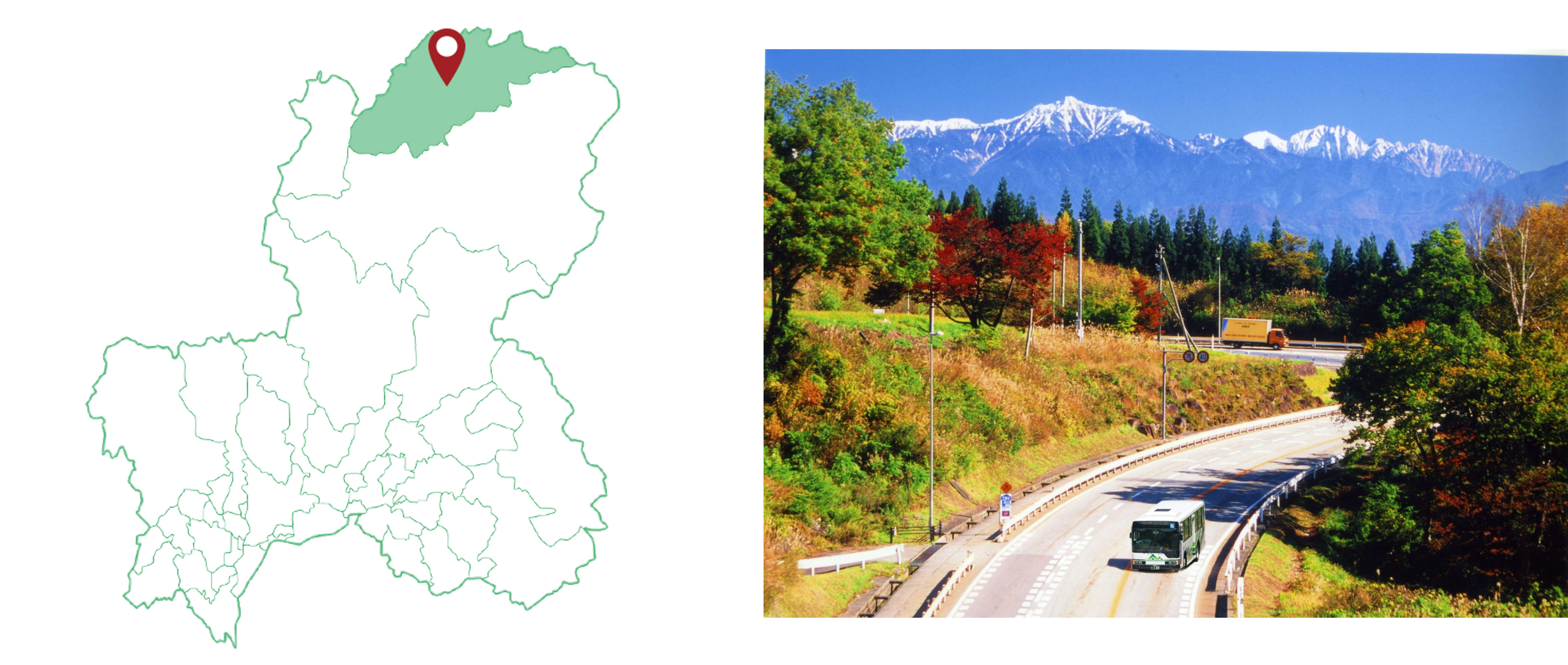 飛騨市は、岐阜県の最北端に位置し、周囲は3000mを超える北アルプスをはじめとする山々に囲まれ、総面積792.31㎢の約92%を森林が占めています。年間を通しては、平均気温11度で四季の移り変わりを肌で感じることができ、とても自然に恵まれた地域です。
