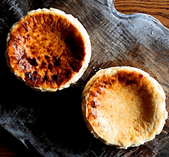 今回のコースの最後には熟成と非熟成の両方のタイプのバスクチーズケーキをご用意致します。その違いを実際に食べ比べて体感して頂けます。
