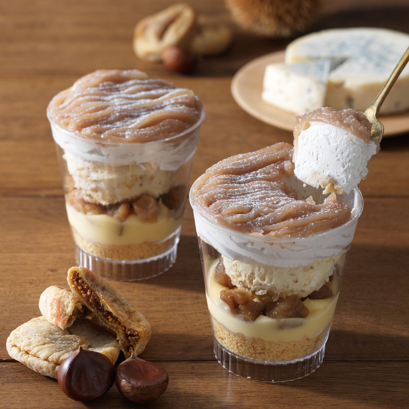 しっかりとした味わいのフィグ&ブルーチーズクリームとこっくりマロン、つぶつぶ食感のイチジクが秋の味わいを彩るチーズスイーツです。