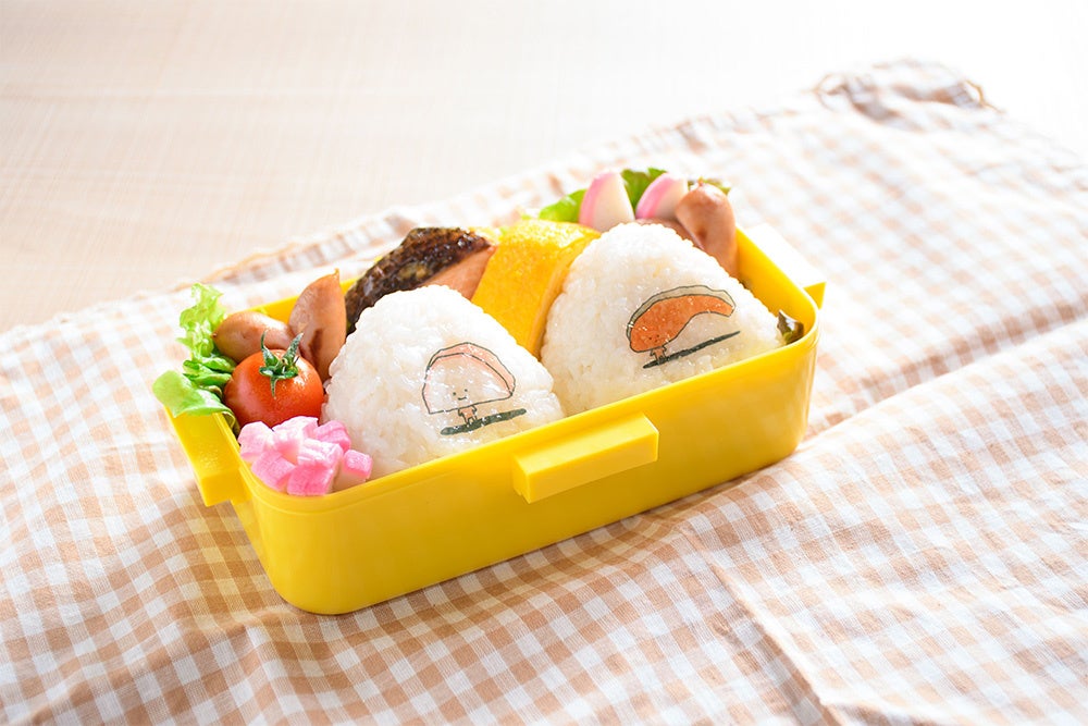 また、お弁当のおにぎりに貼ればあっという間に「キャラクター弁当」の完成です。
