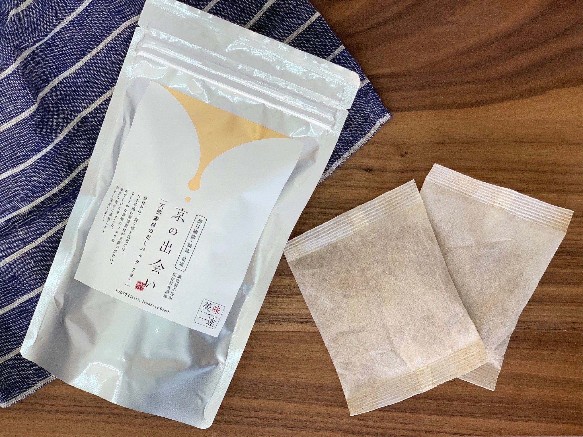 長年京都の味文化を下支えし続け、プロの料理人の皆様によって鍛えられた業務用の原材料と配合を、『そのまま』ご家庭用のだしパックにしました。毎日の食卓で、料亭のような本格的なおだしが気軽にお楽しみいただけます。