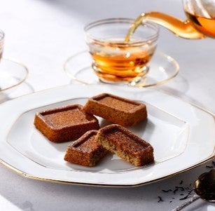 フランスでつくられた発酵バターとゲランドの塩を丁寧に生地に練り込み、口の中でサクッ!ホロッとほどける食感に焼き上げたガレットです。ガレットの中には、紅茶葉パウダー入りのアールグレイキャラメルのフィリングを入れて仕上げました。バターとアールグレイキャラメルの香りが華やかで特別な味わいを引き立てます。