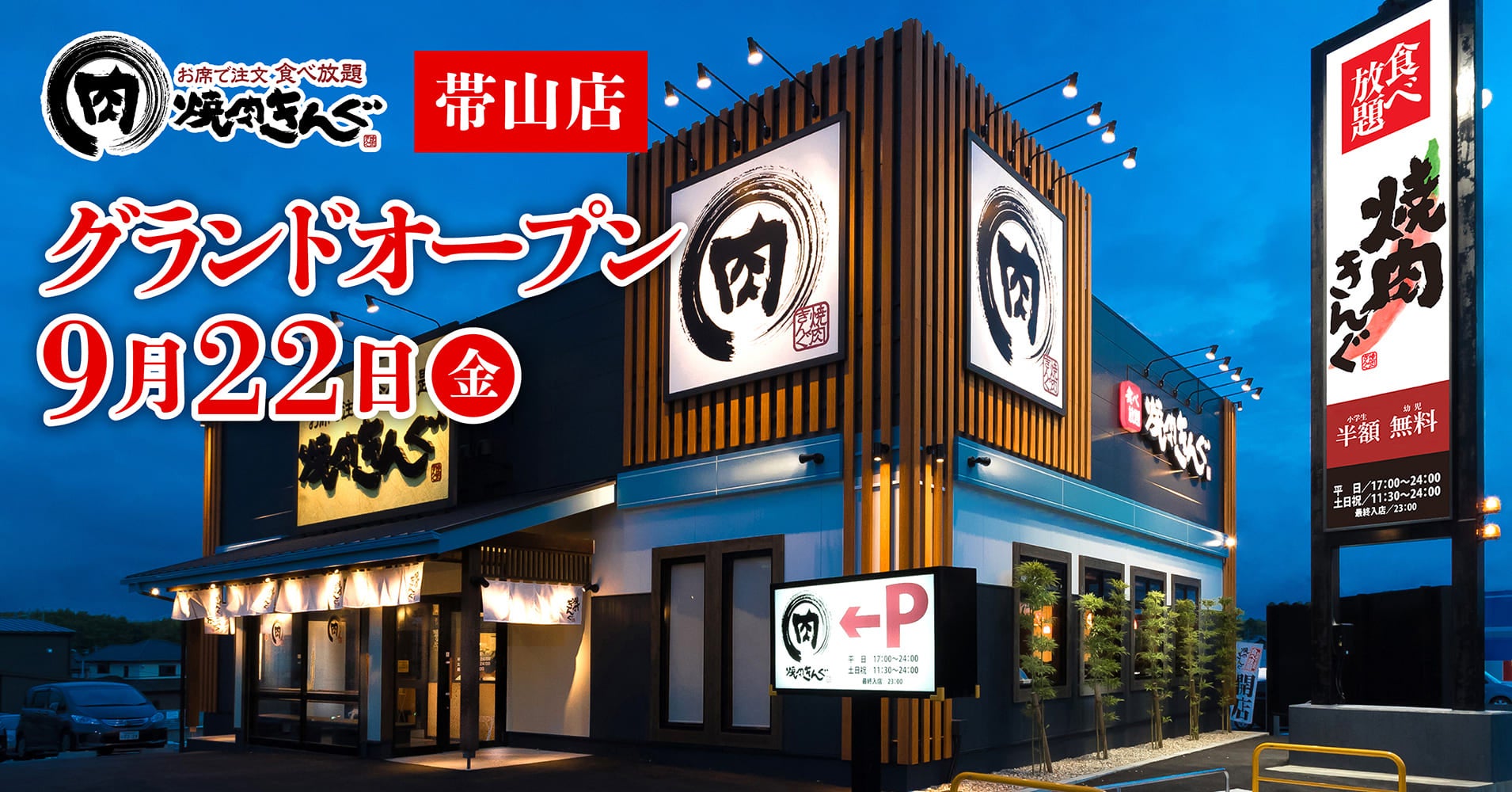 株式会社物語コーポレーション(本社:愛知県豊橋市/代表取締役社長:加藤 央之)は、2023年9⽉22⽇(金)に全国310店舗目となる『焼肉きんぐ 帯山店』(熊本県熊本市)をグランドオープンいたします。