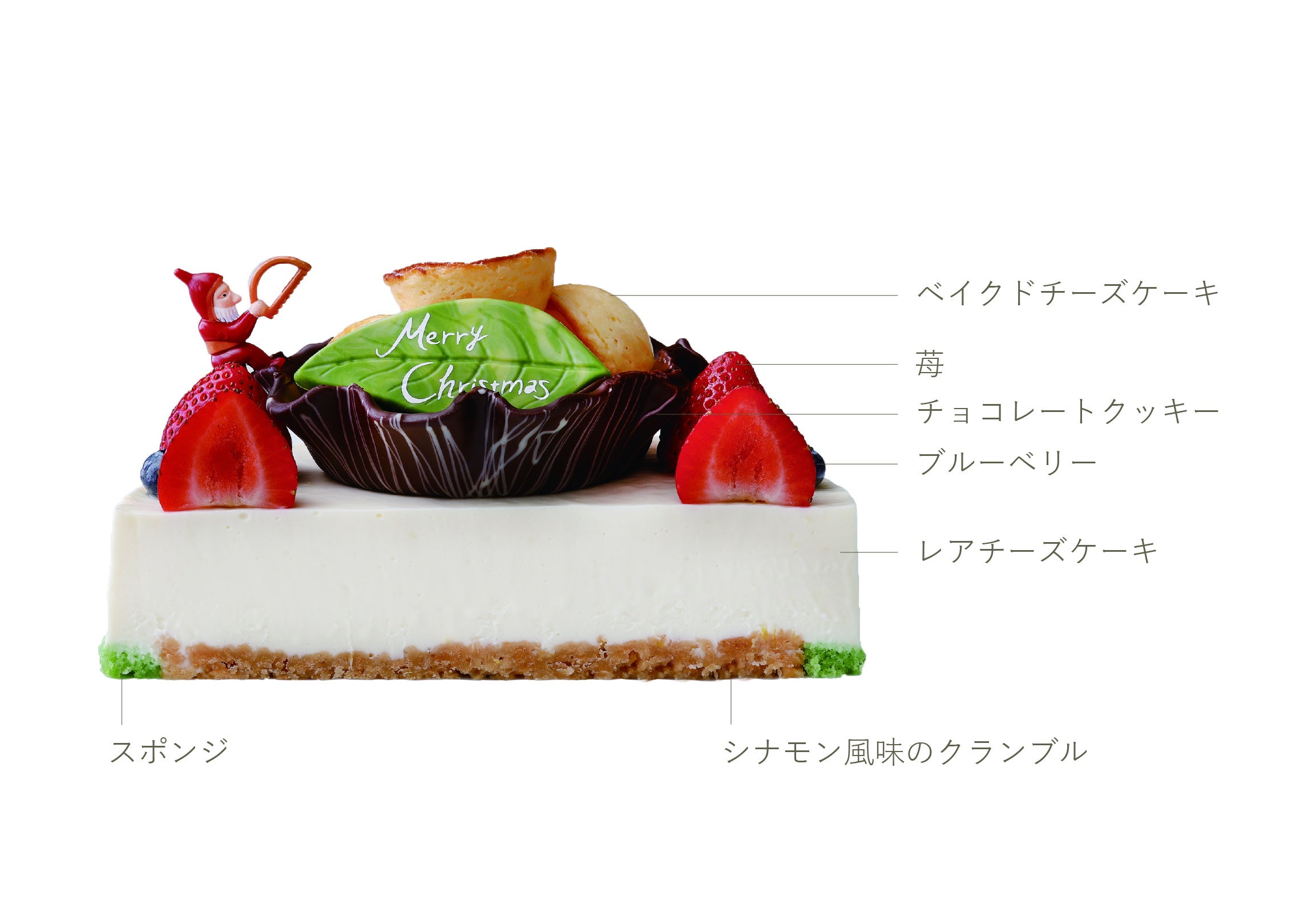 なめらかな口どけのレアチーズケーキの上にチョコレートクッキーの器をのせ、中に小さなベイクドチーズケーキを入れました。物語を感じさせる可愛らしいトッピングに笑顔がこぼれる一品です。2種のチーズケーキの味わいをお楽しみください。