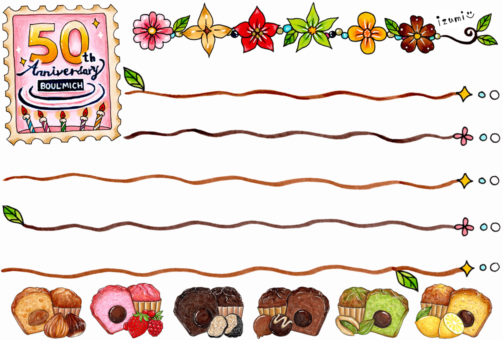 50th限定の「黒トリュフケーキ」を中心とした、トリュフケーキシリーズを鴨志田さん独自のイラストで書き下ろした「50th年アニバーサリーカード」プレゼントキャンペーンを店頭にて実施中です!