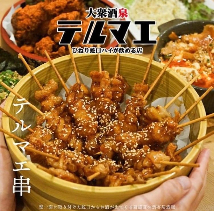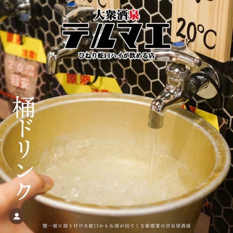 【ひねり蛇口ハイ 大衆酒泉テルマエ】は、伝説の酒の泉「酒泉」の存在を信じ発掘に成功した初代テルマエが世界各地の様々な酒泉を持ち寄り、酒泉を世に広める為に作り上げたお店である。
