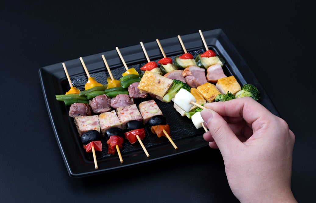 片手でつまみやすく立食シーンでも大人気なミートピンチョス4種の盛り合わせ。