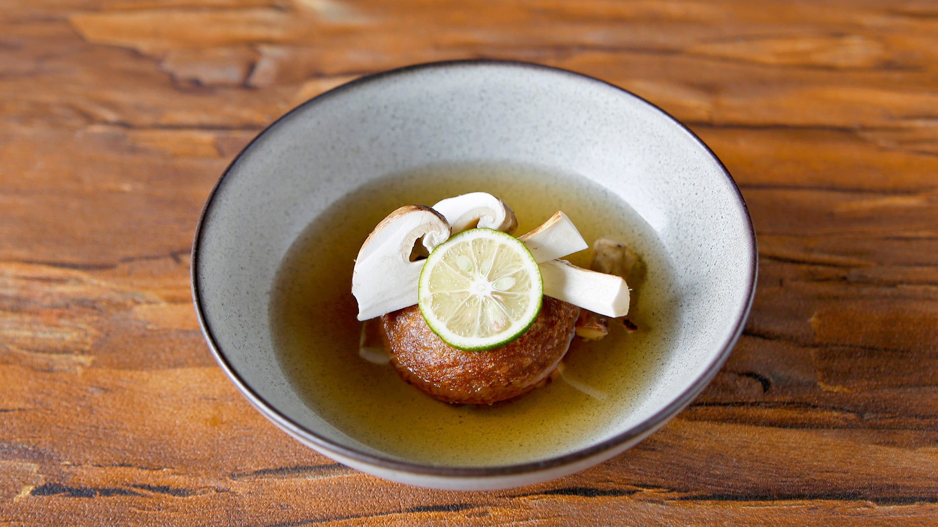 ほぼ生の松茸に、熱いお出汁をかけてご提供。香りと食感をお楽しみいただけます。