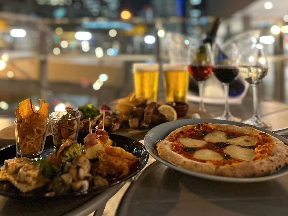 スパークリングワインボトル1本+クラフトビール込みの飲み放題 +7種のアペタイザーボード+肉盛りプレート+窯焼き黒トリュフピザ
