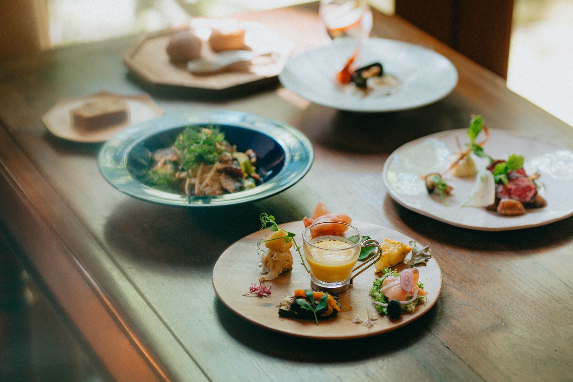 浜松八幡宮でご祈祷した調味料と季節の食材を使用した、体が喜ぶイタリアンをご用意。浜松八幡宮御神木の「雲立の楠(静岡県指定天然記念物)」を眺めながら心と体をととのえる穏やかな癒しのお時間をお過ごしいただけます。