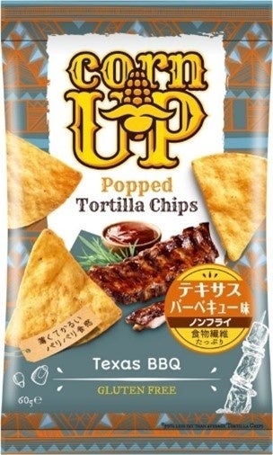 商品特徴:ノンフライ、極薄カットの新食感トルティーヤチップ。バーベキュー味。