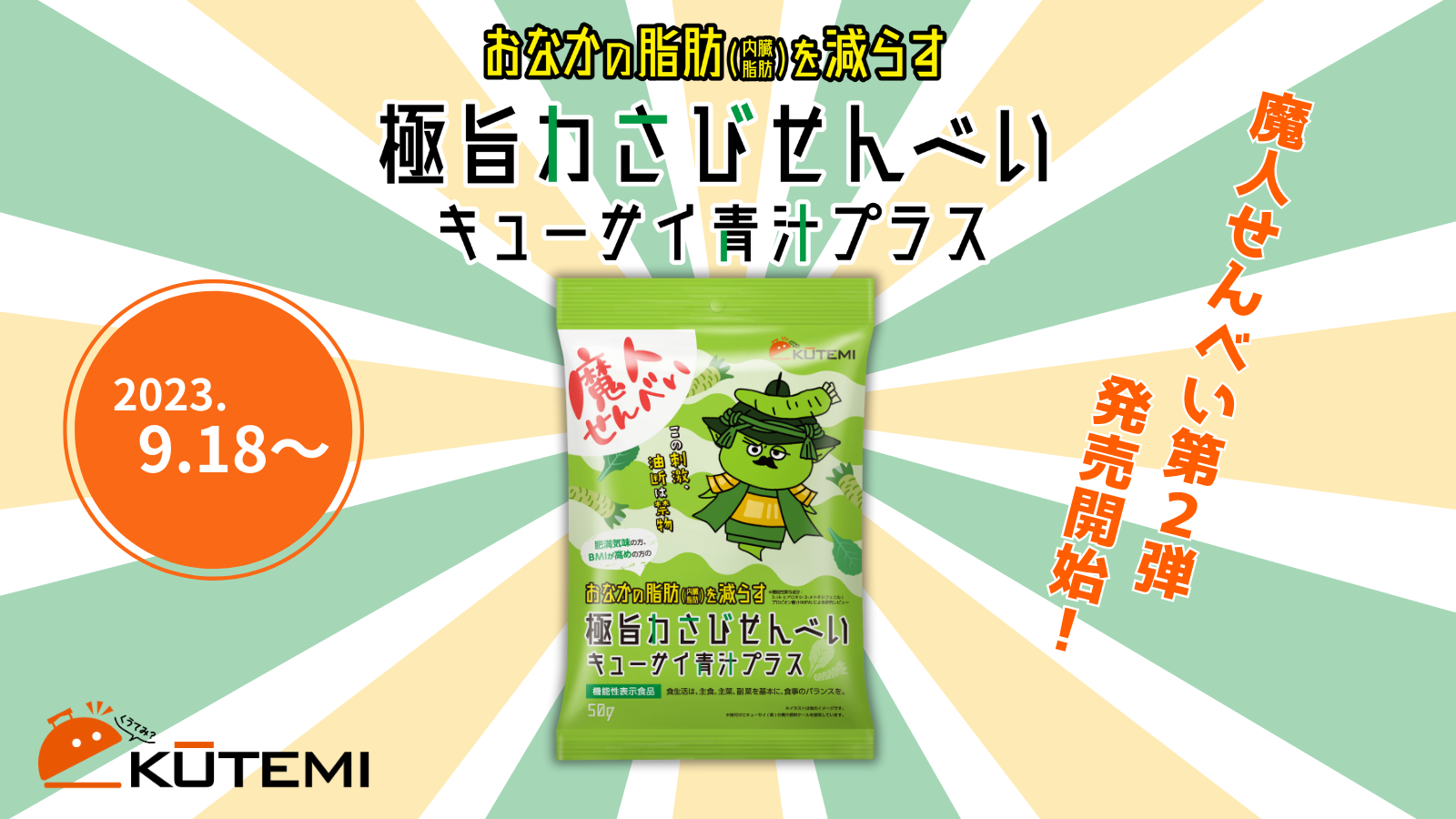 「おなかの脂肪を減らす元祖しっとりカレーせんべい」に続く、機能性表示食品の魔人せんべいシリーズ第2弾。