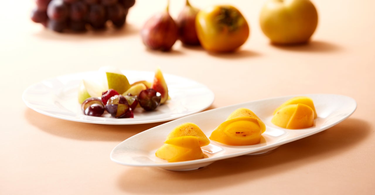 味覚の秋に実ったフルーツたちを食べ放題でご提供します。10月のラインナップはほどよい甘みと緻密な果肉の「柿」。ほおばると果汁がはじける「ぶどう」。そしてとろけるような食感とやさしい甘さの「いちじく」。