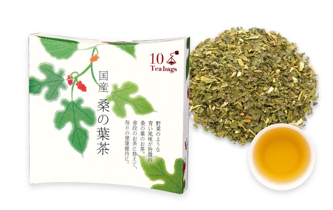 野菜のような青い風味が特徴の桑の葉のお茶。普段のお茶に替えて、毎日の健康維持に。