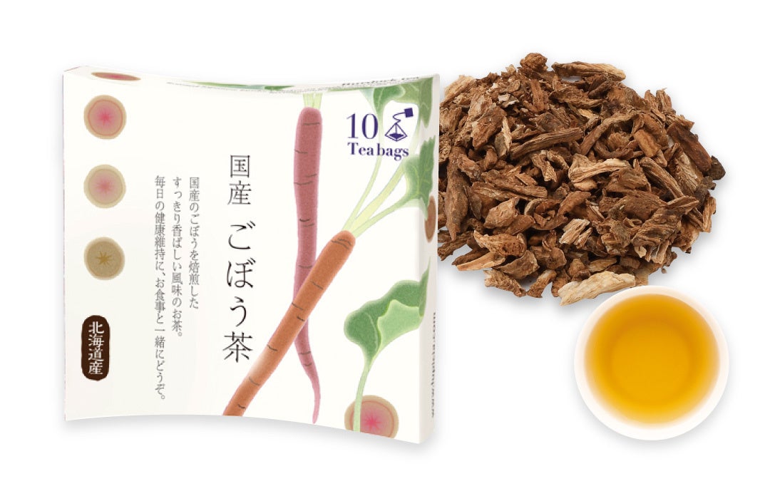 北海道産のごぼうを使用したすっきり香ばしい風味のお茶。心地良い香ばしさとごぼうのうまみに、焙煎の甘みがバランス良く重なります。毎日の健康維持に、お食事と一緒にどうぞ。
