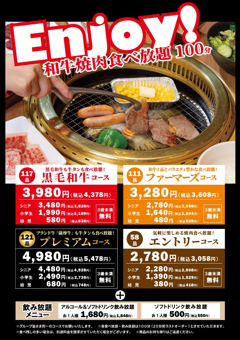 鹿児島県産ブランド牛「薩摩牛」も牛タンも食べ放題!