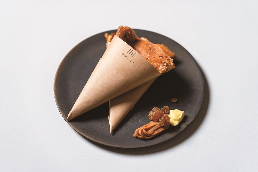 <パティスリー・アサコイワヤナギ>等で研鑽を積み、「パティシエのクレープ」を開拓してきた友納滉一シェフのブランド<イクアリー>。本催事での限定商品として、イタリア産の栗のクリームと発酵バターを使った出来たてクレープをご用意しました。マロンクリームに散りばめたアプリコットの爽やかな酸味、とろける有塩バターのほどよい塩気が楽しめる一品を、ぜひ会場でご堪能ください。
