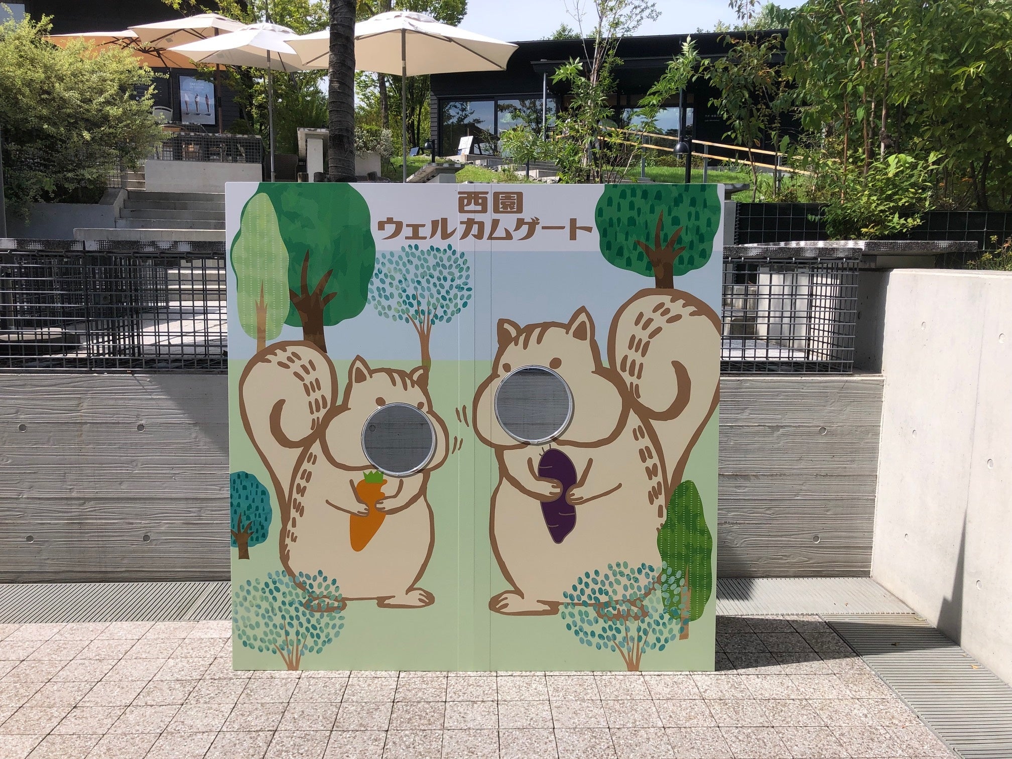 屋外に設置しているので公園の景色を背景にいつでも自由に撮影していただけます。