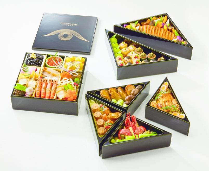 燕の巣や伊勢海老の葱生姜炒め、A5ランクの黒毛和牛などの高級食材を使い、世界で経験を積んだ和洋中のシェフが手掛けたおせちを、約1500年の歴史を持つ越前塗の重箱に。