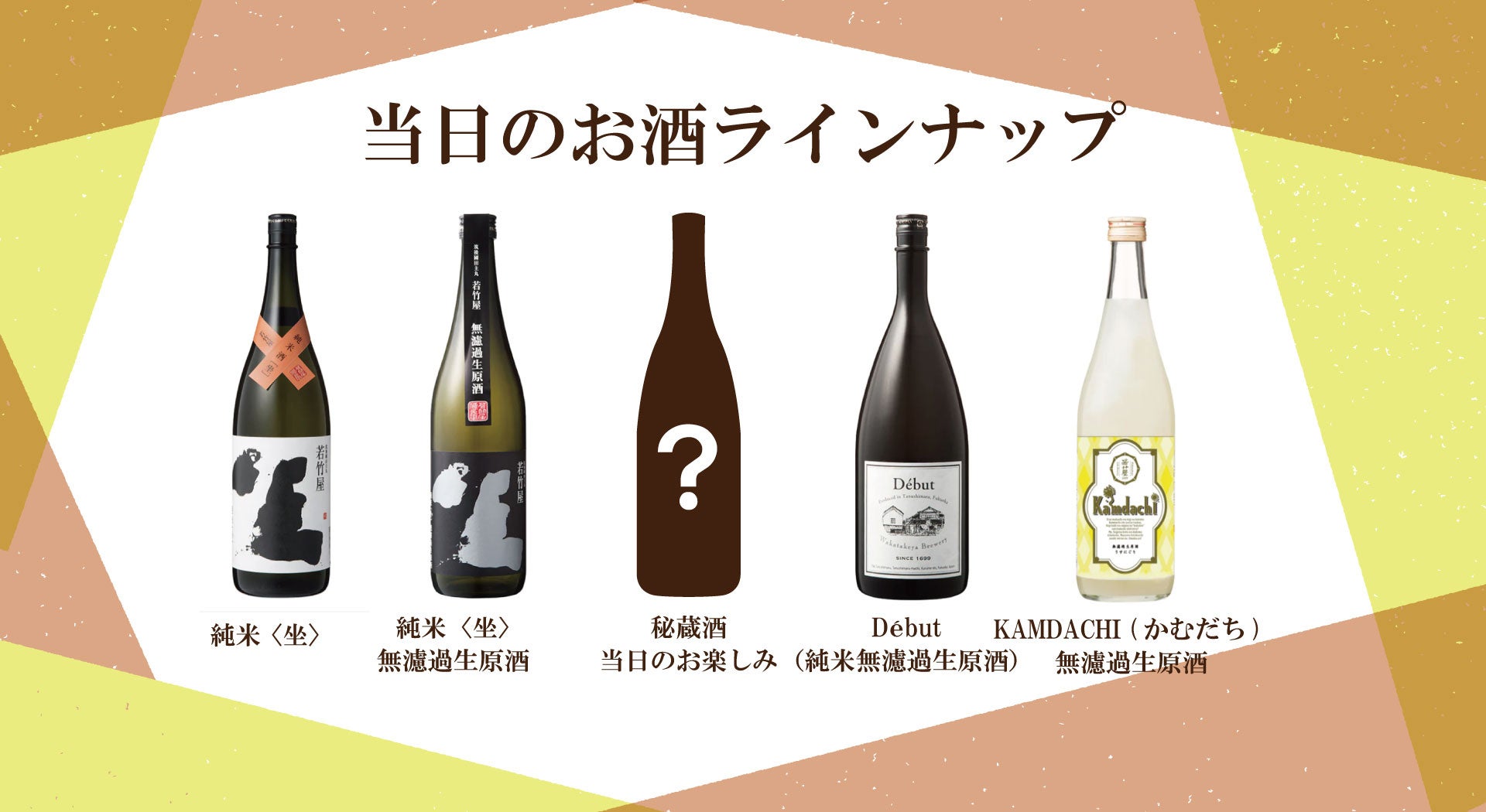 若竹屋酒蔵の蔵人をお迎えし、酒造りに掛けるこだわりなど、ここでしか聞けない情報があるかもしれません。当日は飲み比べ試飲チケットをひと口千円(4杯分)でご購入頂けますが、事前予約の方限定でプラス1杯となり5杯分のチケットをお渡しいたします。希少な季節限定の日本酒でプレミアムな体験をお楽しみください!