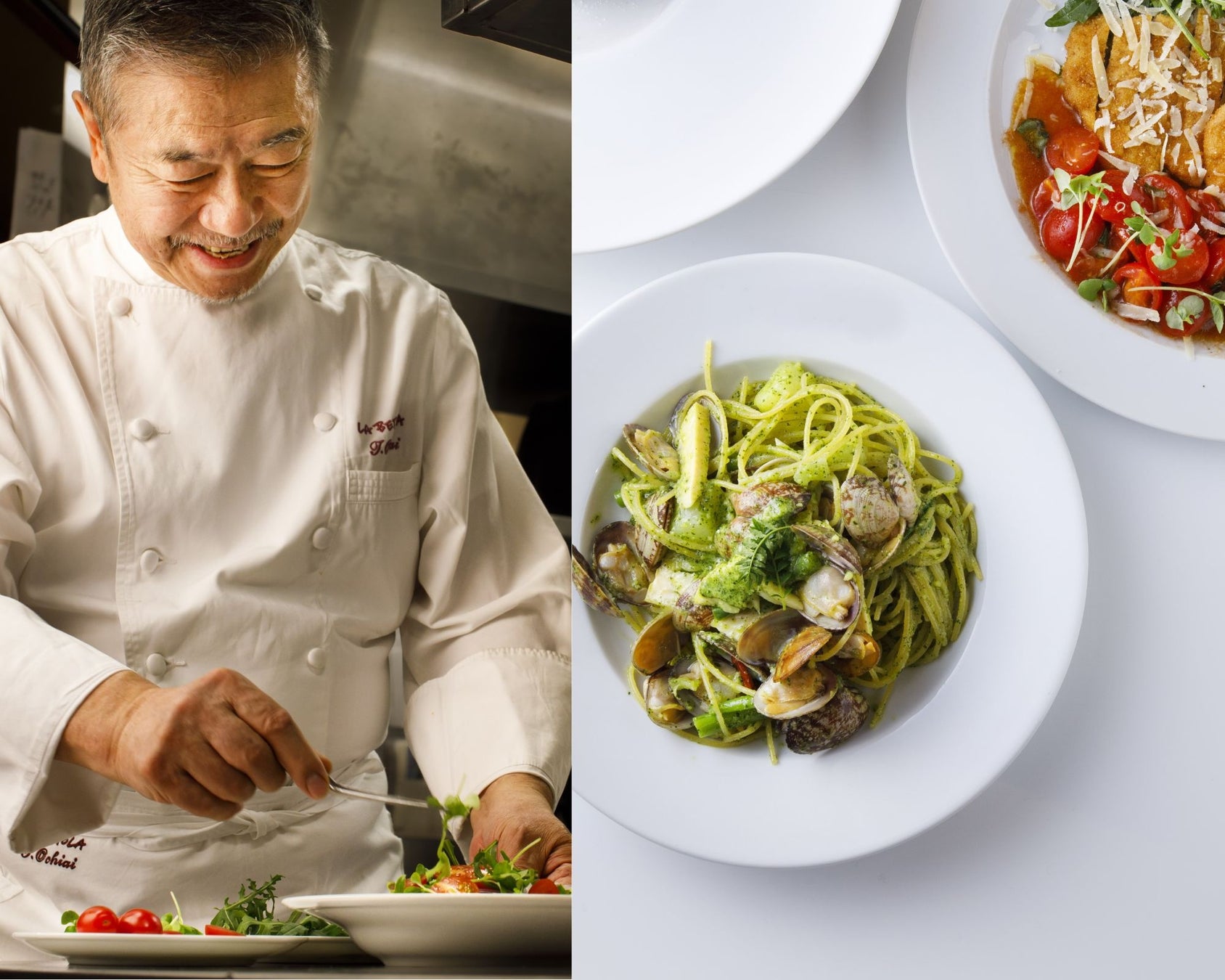 ベッラ・ヴィスタではこれまで、“新江戸洋食”のコンセプトにご賛同いただいたシェフとコラボレーションを実施してまいりました。第1弾ではフランス料理界の巨匠「三國清三シェフ」、第2弾ではアルポルトオーナーシェフ「片岡護シェフ」とコラボレーション。そして今回第3弾として、日本におけるイタリア料理の火付け役であり、先月ハワイにも新店をオープンした「ラ・ベットラ 落合務シェフ」をお迎えいたします。