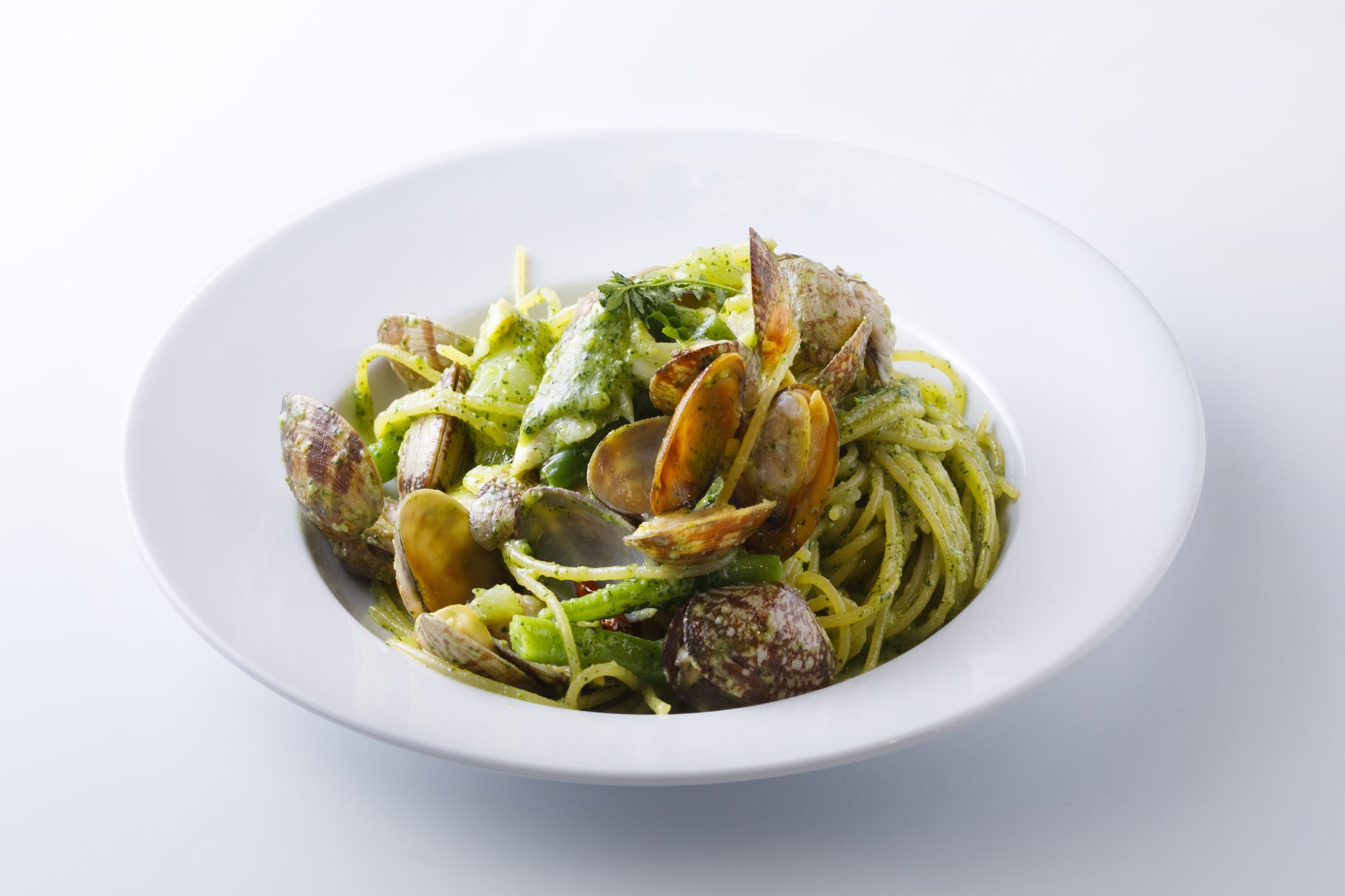 バジルを沢山使用する定番のジェノベーゼが、大葉や小松菜、アサリなどを使用し、胡麻油の隠し味も加えて新感覚のジェノベーゼとして登場。ここでしか味わえない「スパゲッティボンゴレ江戸ベーゼ」は、今回のコラボメニューの中でもおすすめの一品です。
