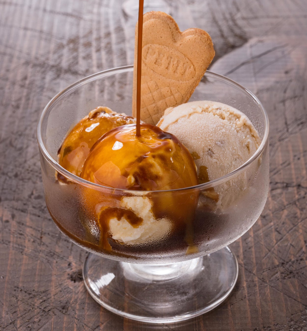 渋皮栗アイスとバニラアイスにほろ苦いエスプレッソをかけてお召し上がりください。