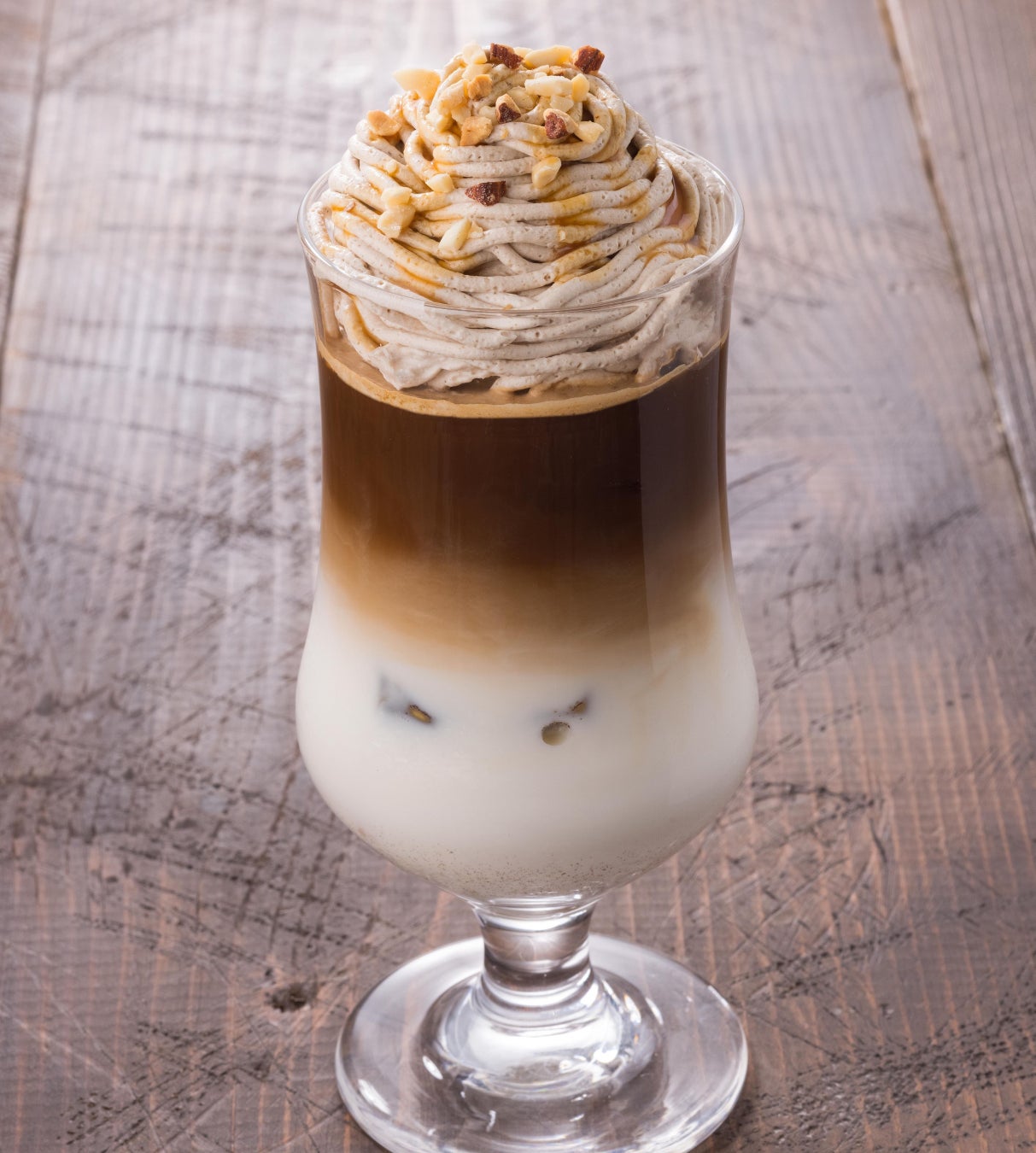 カフェラテに渋皮栗アイスとマロンホイップをトッピングした栗づくしのデザートドリンクです。