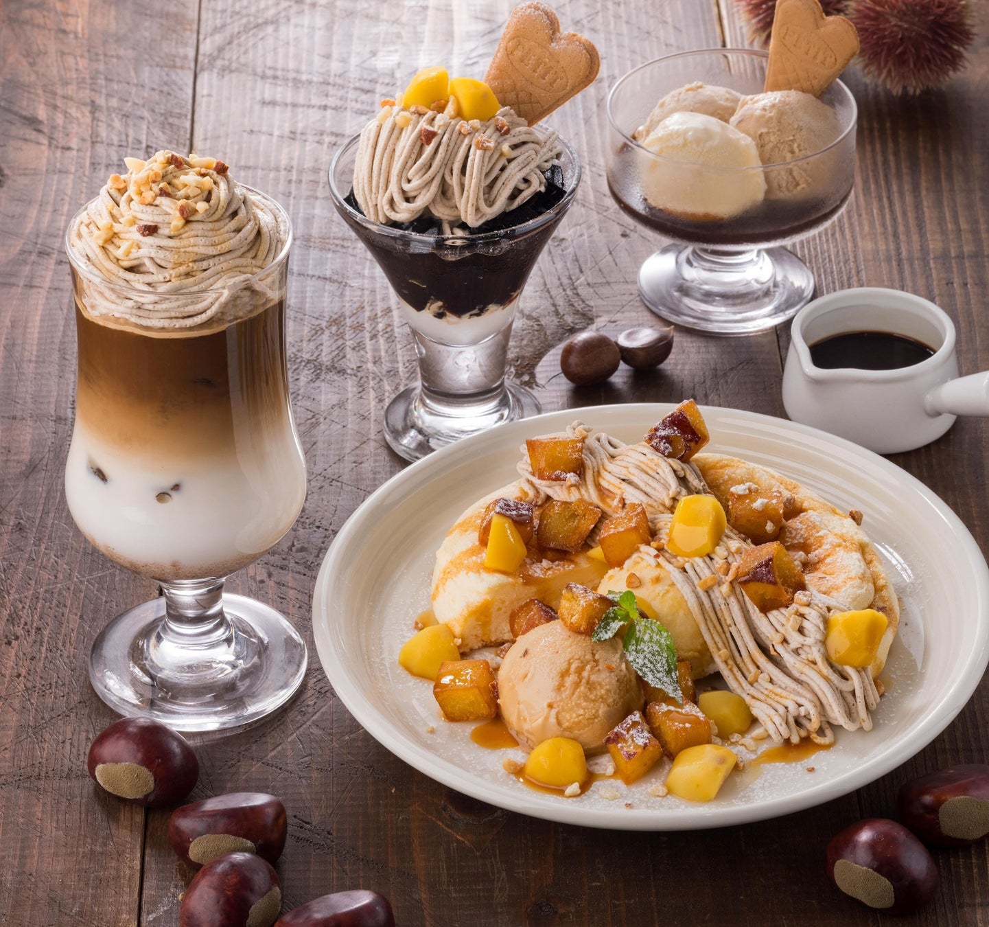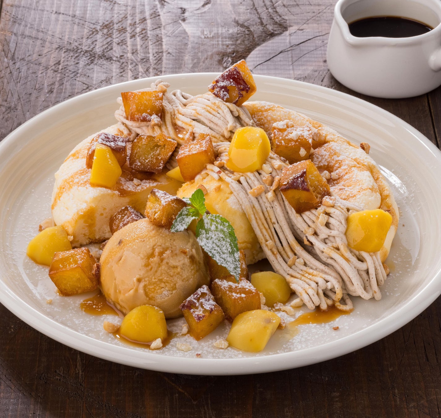 ・渋皮栗アイス×モンブランパンケーキ (エスプレッソ添え) 1,518円