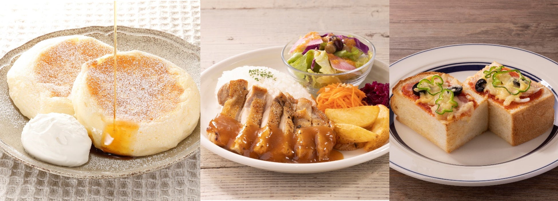 当店イチオシ“小さな森珈琲特製”ふわっもちパンケーキ(カナダ産メイプルシロップ添え)の他、モーニングメニュー、ライスプレートなど1日を通してお楽しみいただけるメニューをご用意しています。