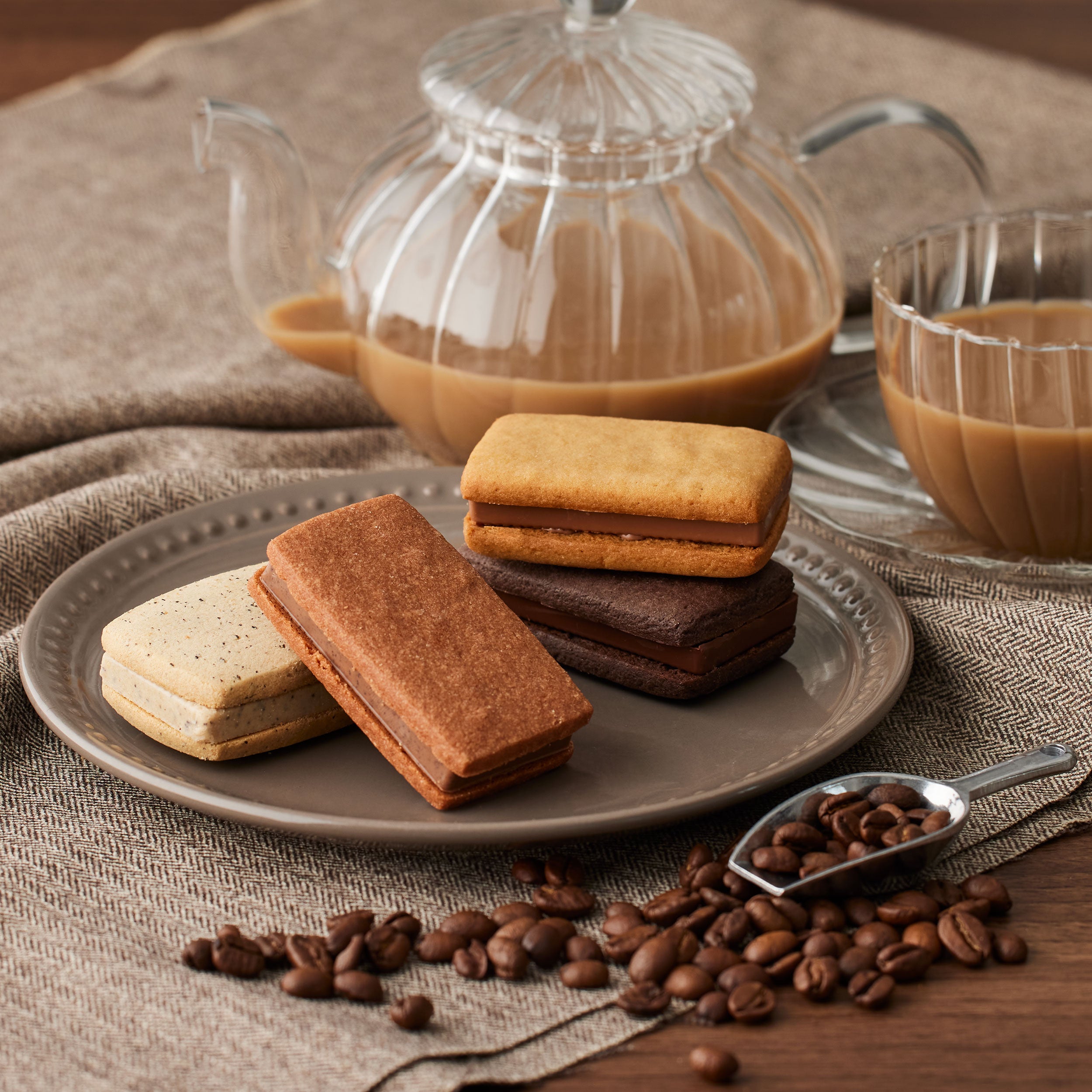 定番の「ビター」、「キャラメル」に加え、季節の味わいが楽しめる期間限定のショコラサンドに、「ロイヤルミルクティー」と「カプチーノ」が仲間入り!