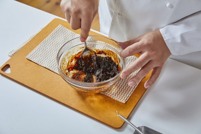 1. ボウルに味噌、みりん、てんさい糖、酒、水、生姜を合わせて、しっかり練る。