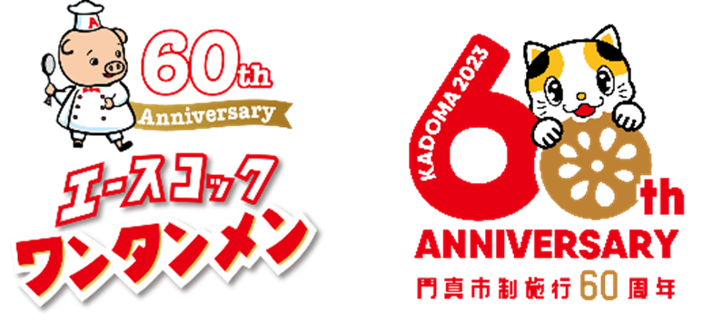 内容:ワンタンメン、門真市 両者の60周年をともにお祝いするセレモニー。エースコック企業キャラクター「こぶた」、門真市イメージキャラクター「ガラスケ」も登場します。