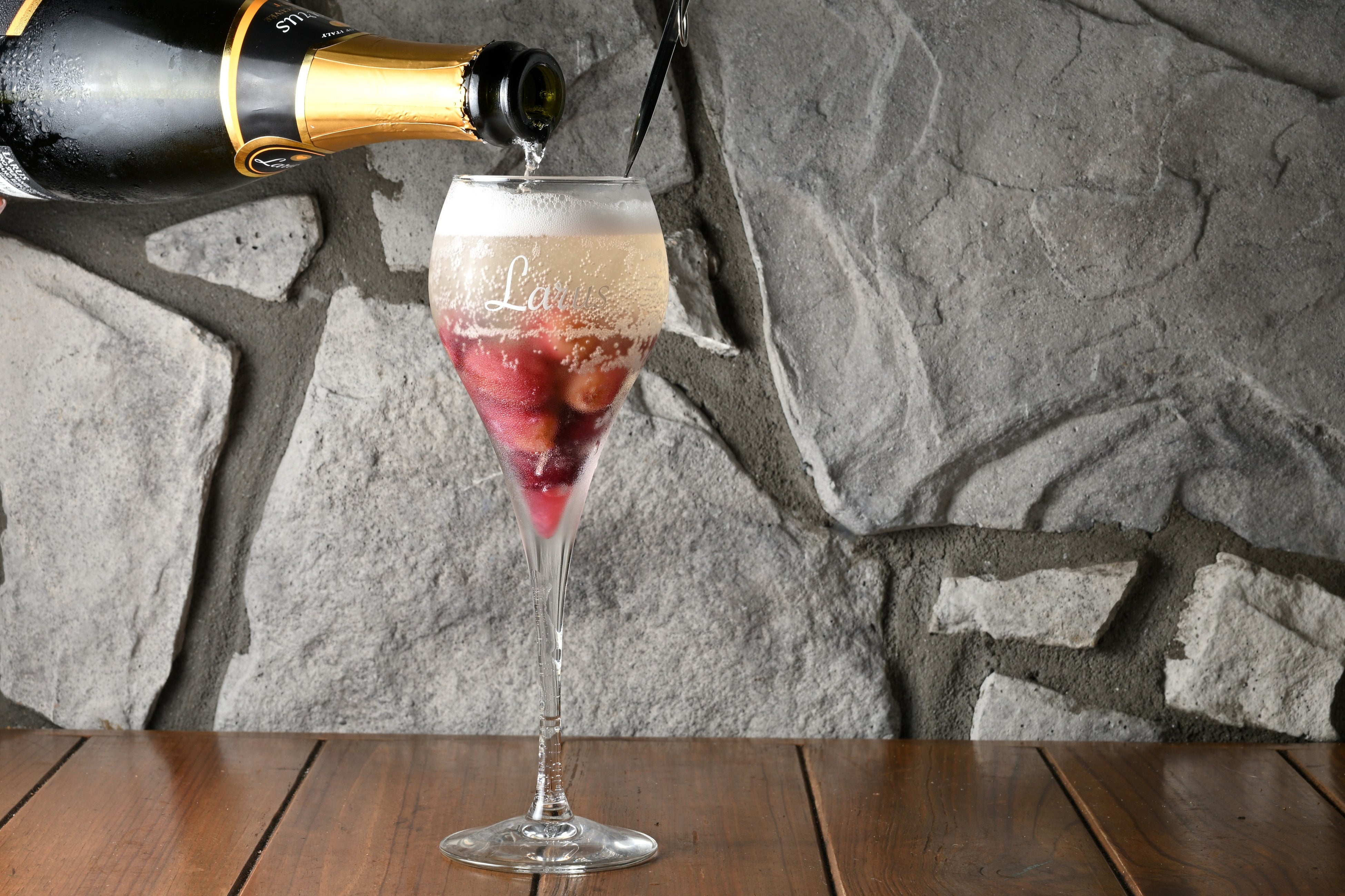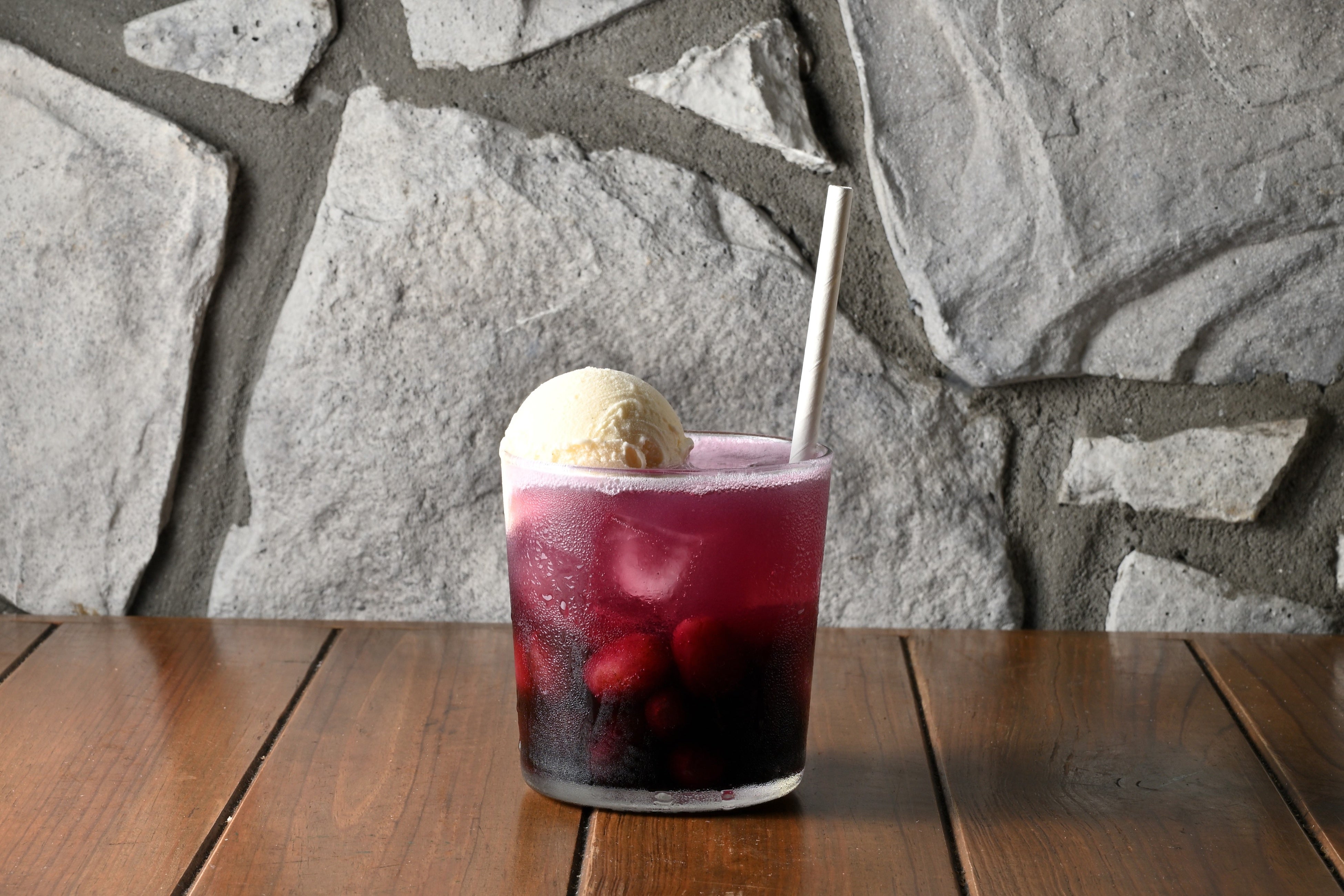 程よく甘い葡萄がスパークリングワインの風味を引き立てる「ごろごろ葡萄のスパークリング」、バニラアイスを添えた贅沢な「大人のグレープソーダ」は、アルコールが得意な方や苦手な方にも乾杯におすすめの一杯です。