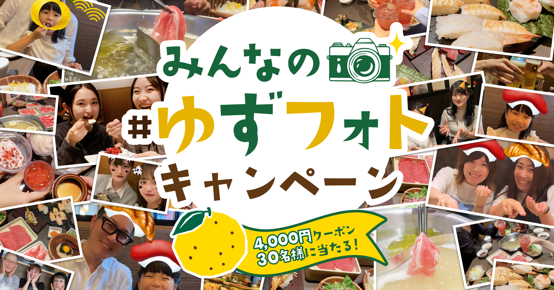 物語コーポレーション(本社:愛知県豊橋市/代表取締役社長:加藤 央之)が全国94店舗を展開する『寿司・しゃぶしゃぶ ゆず庵』は、2023年月9日20日(水)よりアプリクーポン4,000円が当たるSNSキャンペーン「ゆずフォト」を開催いたします。皆様からのたくさんの投稿をお待ちしております。