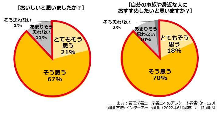 3. 美味しさ:管理栄養士・栄養士の88%が「おいしい」「自分の家族や身近な人にすすめたい」と回答