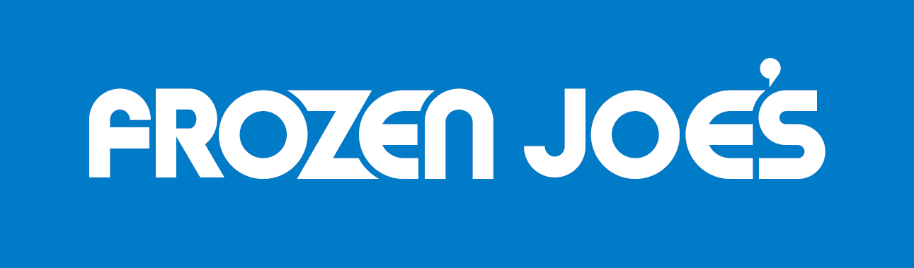 ボックスロゴの背景色に使われているブルーは冷凍一筋で卸売業を営んできた株式会社アイスコのコーポレートカラーであり、青と白の組み合わせは海に浮かぶ氷山を想起させ、FROZEN JOE’Sにて販売する商品全体をイメージしていただくことが目的です。