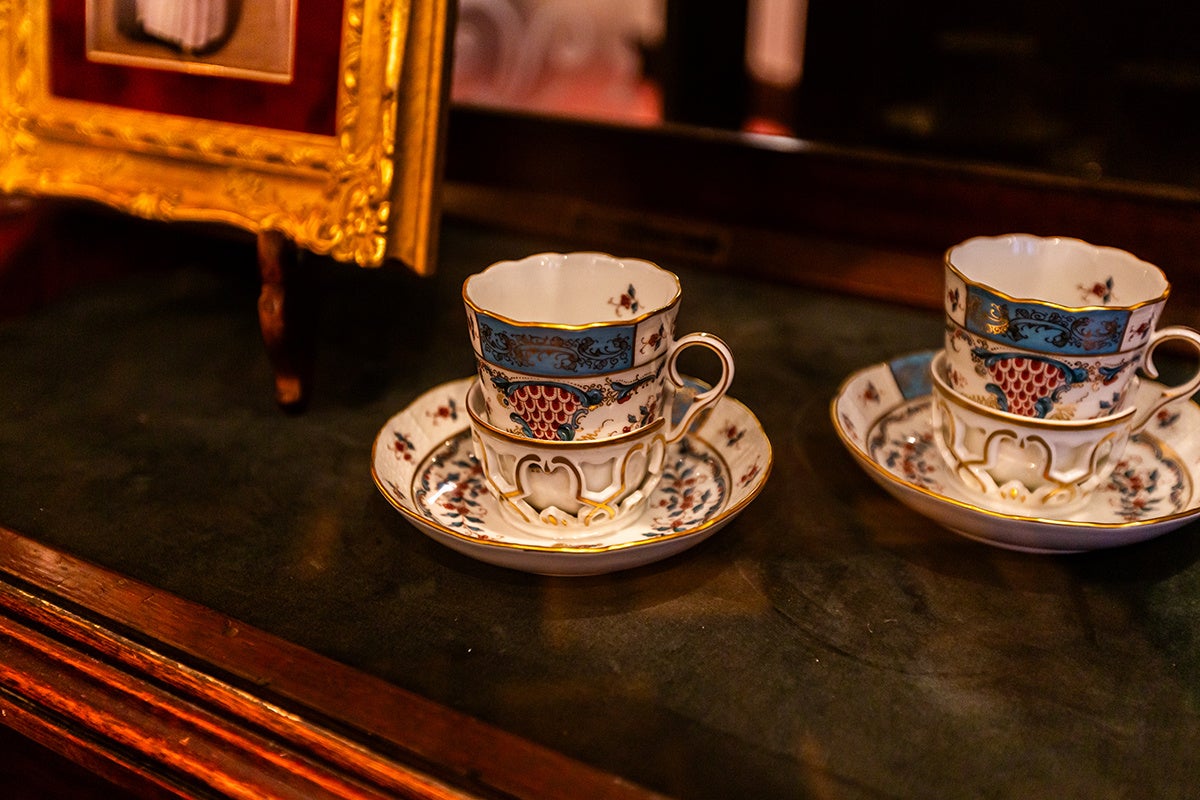 日本に西洋の文化が入ってきたといわれる1900年前後の洋館をイメージした「喫茶館 Bleu Montagne」。店内を彩る陶磁器など日本の骨董品と西洋のアンティーク家具・食器類が、日本と西洋それぞれの文化と融合し調和のとれた空間を生み出し、お客様を優雅で特別な時間へと誘います。